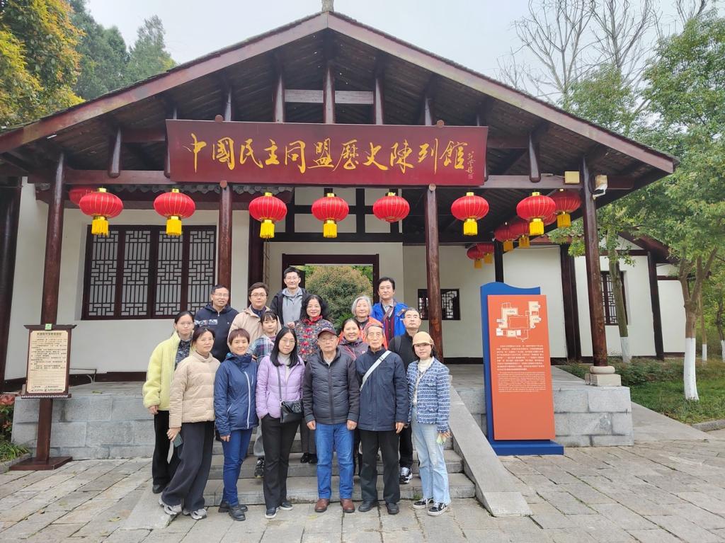 盟员们在西充张澜生平陈列馆前合影