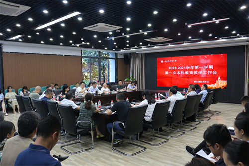 教务处处长刘玉梅对本学期本科教育教学主要工作作了安排。一是塑造价值,出好立德树人任务的“组合拳”,以党建为先,联动宣传落实立德树人工作,深化课程思政建设;二是优化结构,打好新文科教育改革“攻坚战”,围绕“一核三型八维”开展有组织的人才培养;三是夯实基建,谋好本科人才培养的“长远棋”,在专业、教师、课程建设、实践平台和教材上下功夫;四是规范管理,守好本科育人育才的“基本盘”,抓好新生入学第一课及2023年推免工作,守好基本教学秩序,做好审核评估教学文档检查工作等。随后,教务处三位副处长分别就各自分管工作作了补充说明。