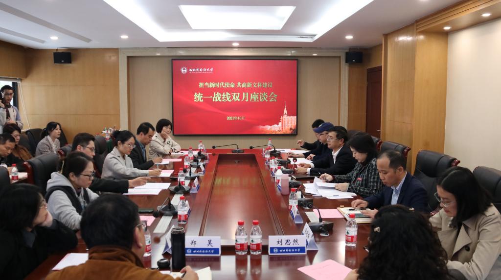 10月26日,学校召开2021年第三次统一战线“双月座谈会”,此次座谈会的主题是“担当新时代使命、共商新文科建设”。党委书记邹渝、党委副书记苟朝莉出席会议,学校各民主党派基层组织、统战团体负责人以及部分党外教师代表,党委统战部、人事处、教务处、科研处等职能部门参加会议。
